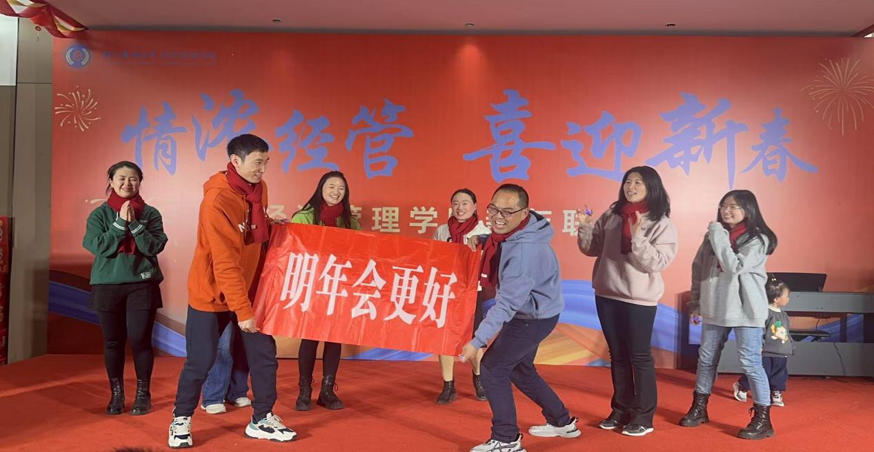 1月11日晚,經(jīng)濟(jì)管理學(xué)院在西徑食堂三樓舉行教職工迎新聯(lián)歡會(huì)。晚會(huì)內(nèi)容豐富多彩,不僅有才藝展示,還有互動(dòng)游戲和幸運(yùn)抽獎(jiǎng)等環(huán)節(jié),讓每一位參與者都能感受到家的溫暖和集體的力量。新入職教師代表用真摯的話語表達(dá)了對(duì)未來工作生活的美好憧憬以及對(duì)學(xué)院大家庭的感恩之情;陳氏太極表演、鋼琴演奏、獨(dú)唱、集體舞以及歌曲對(duì)唱等節(jié)目輪番上演,每一個(gè)動(dòng)作、每一句歌唱都充滿了力量與激情。