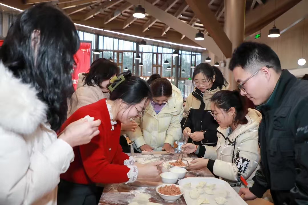 1月9日,食健學(xué)院在銀杏餐廳舉辦“食光新歲 健行筑夢(mèng)”2025新春聯(lián)歡活動(dòng)。聯(lián)歡會(huì)表彰了在科學(xué)研究、人才培養(yǎng)、黨建思政、社會(huì)服務(wù)等方面為學(xué)院做出重要貢獻(xiàn)的一批教師代表,鼓勵(lì)全體教職工新的一年再接再厲,再創(chuàng)佳績(jī)。聯(lián)歡活動(dòng)還設(shè)置了寫春聯(lián)福字、辭舊迎新、包餃子吃餃子比賽、現(xiàn)場(chǎng)小游戲、大合唱等環(huán)節(jié)。現(xiàn)場(chǎng)氣氛熱情洋溢、其樂融融,充分展現(xiàn)了教職工凝心聚力、積極向上的良好精神風(fēng)貌,活動(dòng)在一片歡樂祥和的氛圍中落下帷幕。