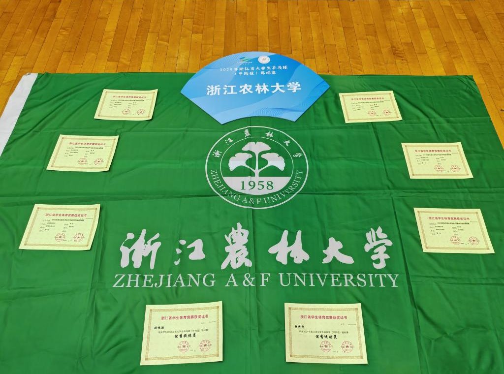 此次比賽,我校代表隊在領隊馮祎中和教練員張振穎老師的帶領下,共有10名隊員參加比賽,我校運動健兒敢打敢拼、不畏艱難、奮勇爭先,還取得男子雙打第四名和混合雙打第七名的優異成績。張振穎老師獲得“優秀教練員”的榮譽稱號,胡偉軒獲得“優秀運動員”的榮譽稱號。本次比賽充分展現了我校運動員團結拼搏,永不放棄的體育精神和“堅韌不拔、不斷超越”的浙農林大精神。