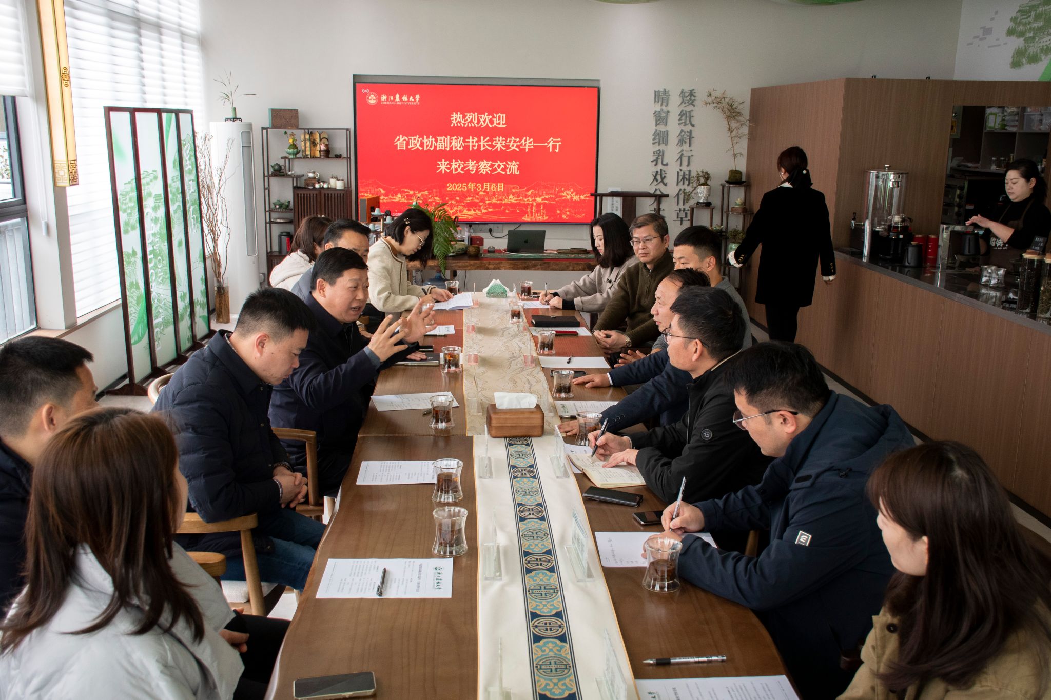 包松永對榮安華一行的到來表示歡迎,并向省政協長期以來對學校的關心和支持表示衷心感謝。在簡要介紹學?;厩闆r后,包松永表示,浙江農林大學是一所美麗與實力兼具的大學,希望雙方能夠加強涉茶領域交流合作,深入踐行“三茶”統籌發展理念,共同賦能我省歷史經典產業高水平傳承高質量發展。