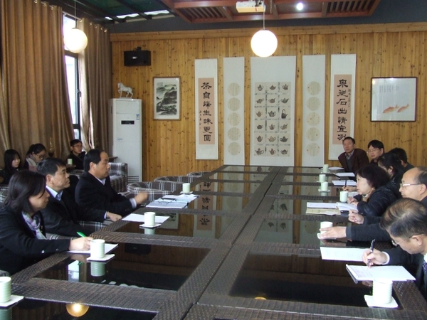 11月25日上午,校長周國模、副校長張立欽在國際處、文化學院負責人陪同下,實地查看了漢語國際推廣茶文化傳播基地籌建工作情況,并召開座談會對下一步迎接國家漢辦檢查工作進行指導。