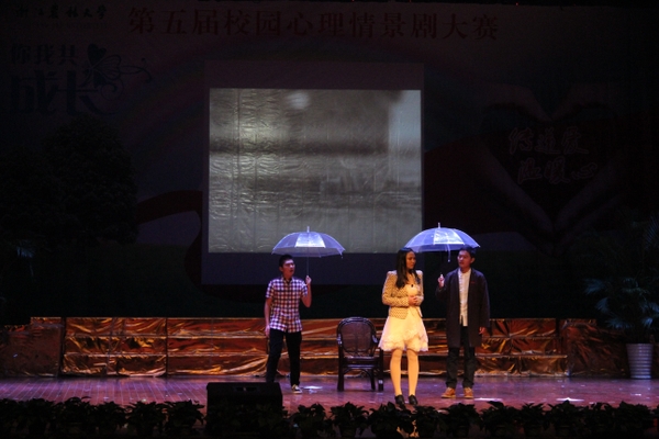 本屆校園心理情景劇大賽以“傳遞愛 溫暖心 你我共成長”為主題。在預賽中脫穎而出的八支參賽代表隊緊緊圍繞求職困惑、生活挫折、迷失自我等校園日常情景展開,細膩而生動地反映出了大學生成長成才過程中出現的心理矛盾和心理困惑,并通過藝術加工,以情景劇形式展現了大學生合理宣泄不良情緒,科學理性應對心理挫折的方式方法。演員們極富感染力的表演,引起了觀眾的強烈共鳴。激烈的比賽中,校心理健康教師團隊為大家帶來精彩的舞蹈《瑪麗的小蘋果》引爆全場。