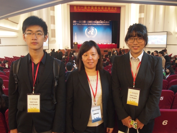 我校代表在大會中模擬位于東加勒比海的島國圣盧西亞(Saint Lucia)外交官,在為期三天日程安排緊湊的會議中,兩位同學不僅通宵書寫工作文件和決議草案,更在會場內外聯絡游說各國代表爭取建立同盟。會議全程使用英語為工作語言,雖是模擬聯合國,但彌漫著不亞于真實會議的緊張氣氛,極大地凸顯了我校代表優秀的專業素養和出眾的外交能力,尤其是李銘慧同學勇于進取的拼搏精神贏得了擔任評委的中國聯合國協會副會長兼總干事劉志賢和全國老齡工作委員會辦公室副主任、中國聯合國協會常務理事肖才偉的一致贊揚。