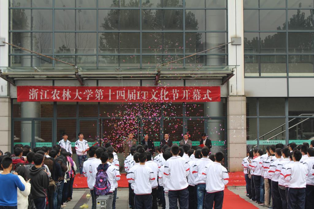11月16日上午,浙江農林大學第十四屆IT文化節開幕式在學生活動中心舉行。校黨委委員、宣傳部部長陳永富、校團委主持工作副書記侯錫銘、信息工程學院常務副院長徐愛俊、等領導應邀出席開幕式,信息工程學院相關負責人、師生代表以及來自其他單位的參賽選手參加了本次開幕式。