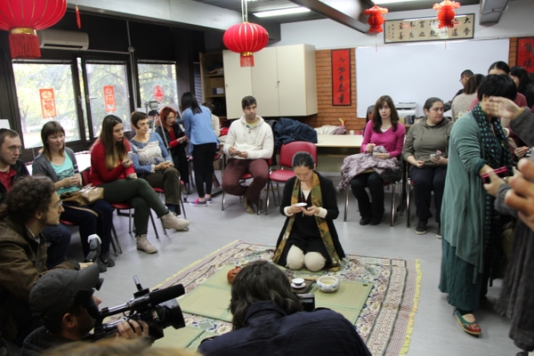 在諾維薩德大學孔子學院,我校訪歐代表團為當地的師生呈現了《茶藝紅樓夢》、潮州功夫茶等茶藝。大家席地而坐,品茗談心其樂融融;在羅蘭大學孔子學院,訪歐代表團受邀為正在參加培訓的中東歐八十余位中外漢語教師開展了茶文化的講學和呈現;在格拉茨大學孔子學院,二十余位教授和老師現場聆聽了王旭烽教授的講課,從人文科學和自然科學的雙重角度學習和體驗了中華茶文化。