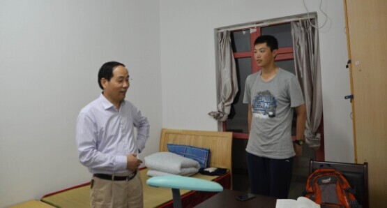 周國模還特地走訪了理學院兩名新生的“特別”寢室.今年理學院新招錄兩名身高190厘米以上的學生,學校給兩名學生盡可能提供學習和生活便利的服務保障工作。周國模叮囑要更加全面、細致做好相關工作,積極為學生構建良好的生活環境,讓同學們住得放心、舒適。