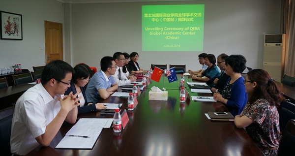 6月25日上午,澳大利亞昆士蘭國際商業學院全球學術交流中心(中國站)揭牌儀式在我校國際教育學院舉行。校長阿思夫·伊可巴、校長助理鄭曉云,我校國際教育學院院長邱亦維等參加儀式。