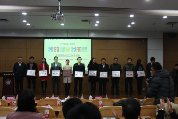 會議表彰了2013年度浙江省高校文明寢室創建工作先進單位和省級文明寢室。我校榮獲浙江省高校文明寢室創建工作“先進單位”,A6-116等18個學生寢室獲得浙江省大學生“文明寢室”榮譽稱號。