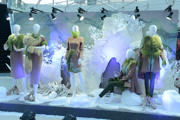 黃玉冰老師的參賽作品為原創品牌本域2014秋冬女裝服裝設計1系列8套作品,此次參賽主題名為《江南水印象》,整組服裝通過創意的櫥窗品牌概念、現場答疑和動態服飾配搭展示進行決賽評選。本域品牌意在構建一種融合生態之美的服飾視覺,通過施法自然印象,來創意服飾形態,結合東方式的典雅和婉約,于秋冬的落寞蕭瑟下,傳遞一種東方哲學概念下的服飾視覺印象。作品通過材質的肌理混搭裝飾和部分融合傳統旗袍的典雅身形,服裝身形中采用水流曲線的分割設計,自然靈動的色彩,表達一種東西方文化融合的時尚概念。該作品將被省服裝設計師協會永久收藏,并參加2014北京國際時裝周作品展。