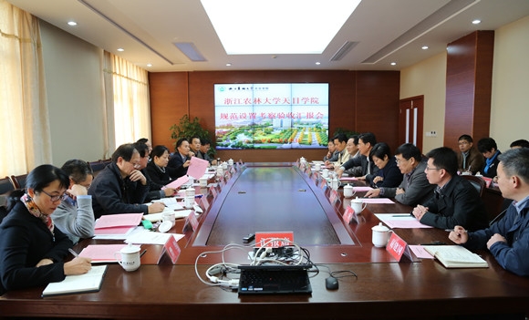 浙農林大學新聞網訊 為指導天目學院更好地做好規范設置工作,順利接受教育部規范驗收,11月18日上午,由浙江工業大學副校長肖鋼任組長的省獨立學院規范設置驗收專家組一行8人,對天目學院進行了考察驗收。副校長鮑濱福,諸暨市副市長俞越,天目學院有關負責人等參加驗收會,并陪同專家組一行實地考察。