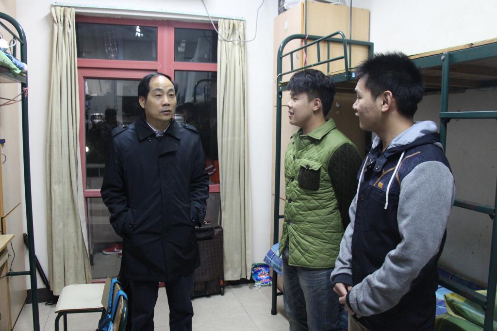 11月29日晚,校長周國模在集團總經理的陪同下,先后走訪了A3-102(聯系寢室)、103,B5-209等學生寢室,針對前期走訪中發現的問題進行回訪。經濟管理學院、公寓服務中心負責人等陪同走訪。