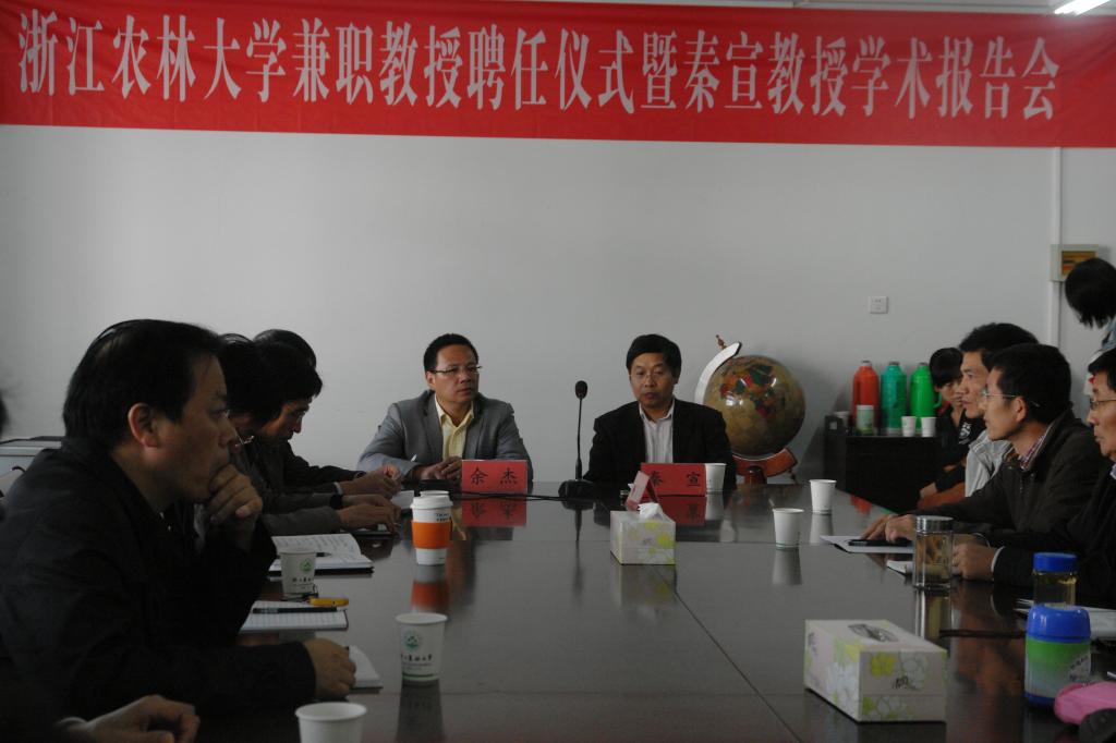 10月25日上午,浙江農林大學兼職教授聘任儀式暨秦宣教授學術報告在學1-406舉行。校黨委副書記余杰,以及人事處,馬克思學院、法政學院負責人,馬克思學院、法政學院全體教師及研究生共50余人參加了聘任儀式和報告會。聘任儀式和報告會由馬克思學院、法政學院黨總支書記李勇華主持。