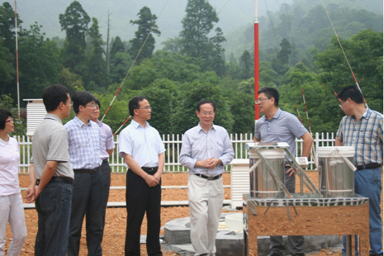 浙農林大新聞網訊 6月6日,國家林業局科技司司長彭有冬在國家林業局生態網絡中心副主任儲富祥、楊鋒偉的陪同下到以我校為技術依托單位的天目山國家級森林生態系統定位研究站進行考察指導。浙江省林業廳副廳長吳鴻、我校校長周國模陪同考察。