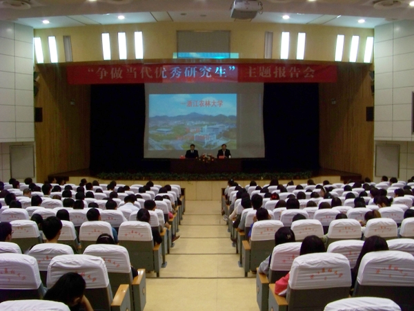 浙農(nóng)林大新聞網(wǎng)訊 為激勵廣大研究生潛心讀書,促進(jìn)我校研究生培養(yǎng)質(zhì)量不斷提高,9月25日,副校長張立欽在圖書館第一報告廳為全體研究生作了“爭做當(dāng)代優(yōu)秀研究生”的報告。報告會由研究生處處長童再康主持。