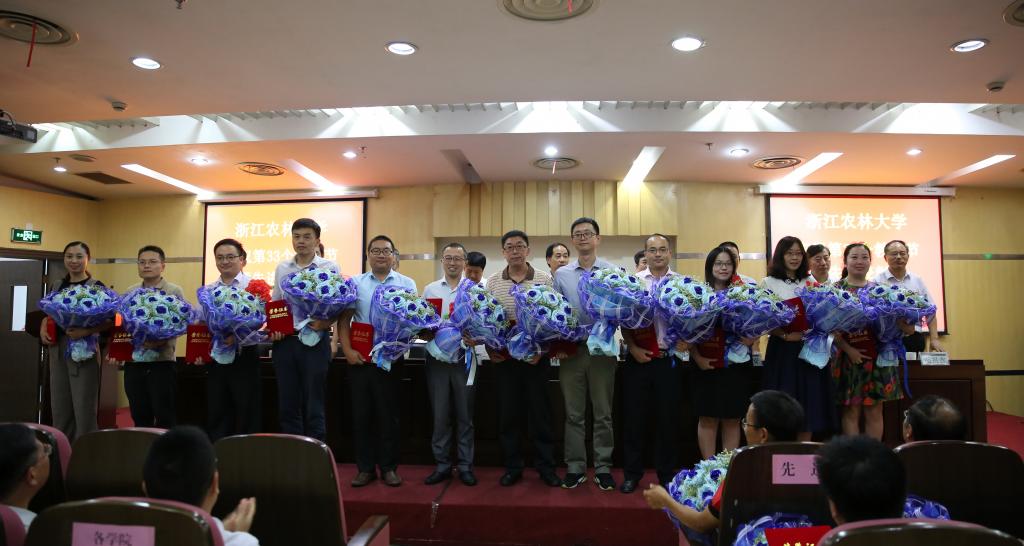 9月8日下午,學校慶祝第33個教師節暨先進表彰會在東湖校區圖書館第二報告廳舉行。校黨政領導班子成員周國模、應義斌、史永安、王自勇、鐘平、金佩華、胡祖吉、童曉暉出席表彰大會,并為受表彰的集體和個人頒獎。會議由校黨委副書記方偉主持。