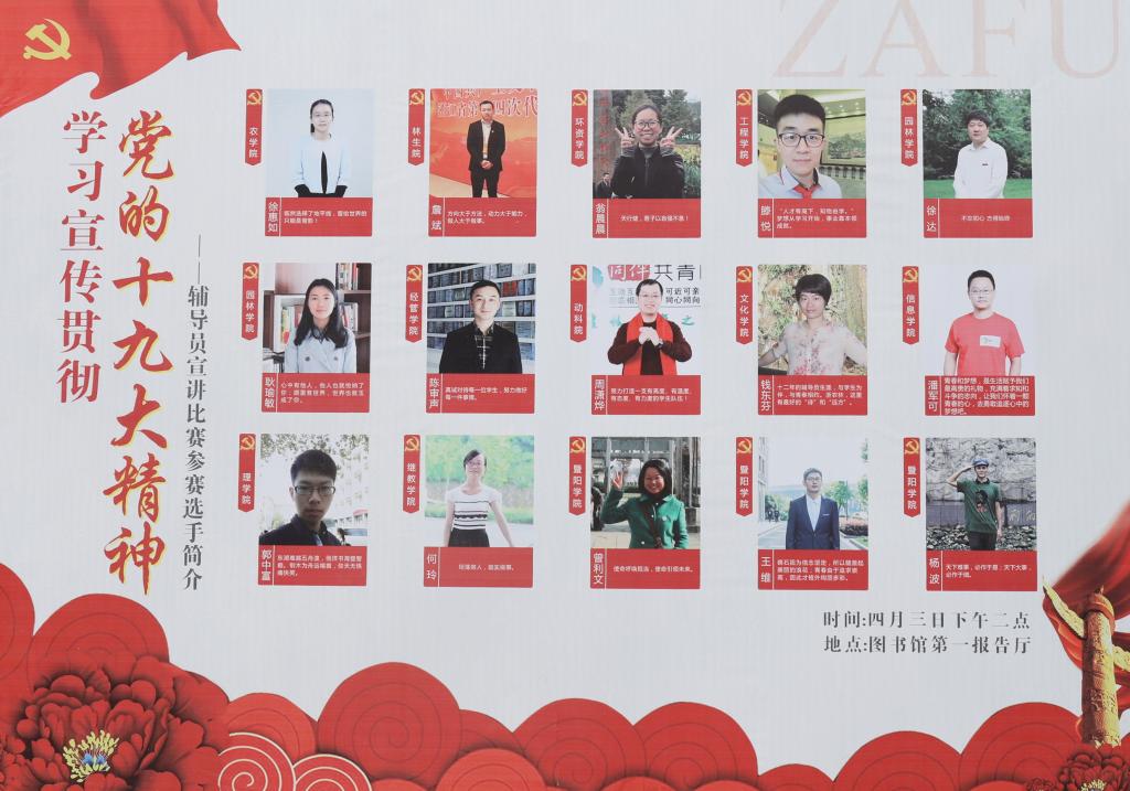 經(jīng)過激烈角逐,經(jīng)管學(xué)院陳審聲獲得大賽一等獎,文化學(xué)院錢東芬等3位輔導(dǎo)員獲得二等獎,林生院詹斌等5位輔導(dǎo)員獲得三等獎。