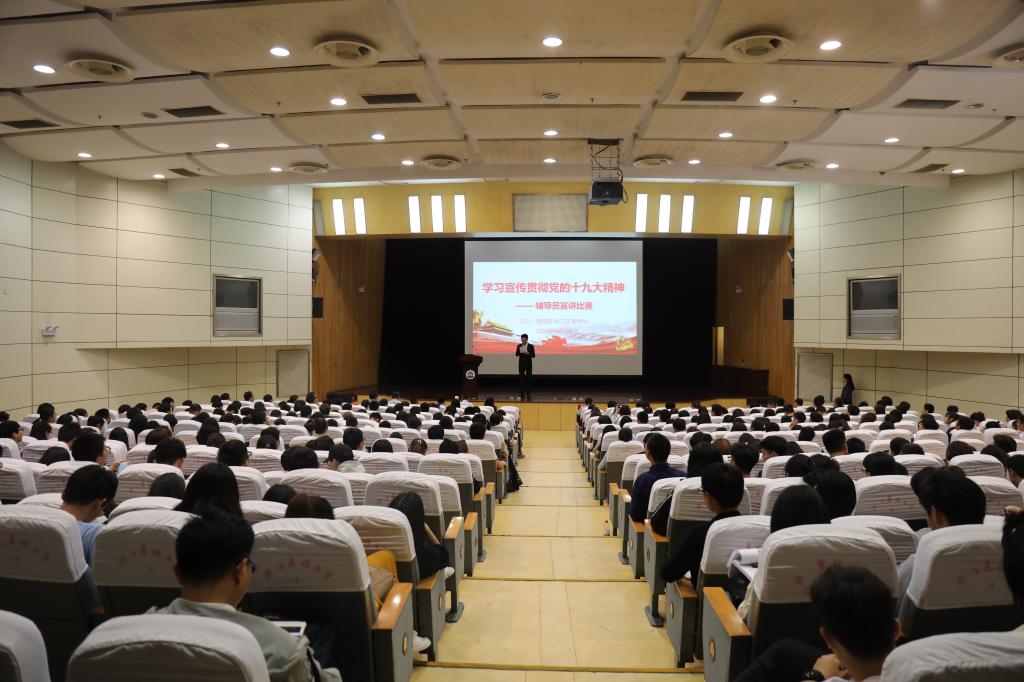 為進一步推進黨的十九大精神學(xué)習(xí)宣傳,用習(xí)近平新時代中國特色社會主義思想武裝頭腦、指導(dǎo)實踐,提升輔導(dǎo)員教育教學(xué)能力,在前期初賽的基礎(chǔ)上,4月3日下午,學(xué)習(xí)宣傳貫徹十九大精神——輔導(dǎo)員宣講比賽在圖書館第一報告廳舉行。校黨委副書記史永安,黨委委員、宣傳部部長胡祖吉出席,學(xué)工部、研工部、團委負(fù)責(zé)人,各學(xué)院分管學(xué)生工作負(fù)責(zé)人、全體輔導(dǎo)員和各學(xué)院學(xué)生代表500余人參加活動。