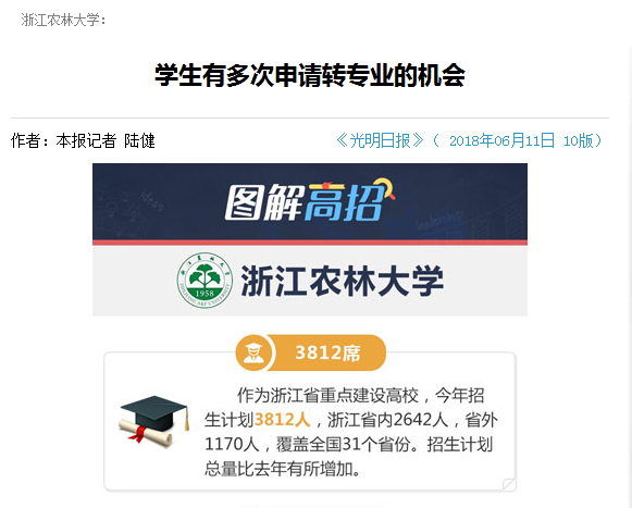 據介紹,“2018高校招辦主任光明百場直播”是光明日報今年高校招生季重磅推出的直播活動,通過融媒體傳播的手段,以公眾喜聞樂見的形式,宣傳高考招生制度改革最新成果,展現中國高等教育在雙一流建設進程中取得的新進展,為考生和家長提供多方位教育信息服務,今年全國共有北京大學、清華大學等108所高校參與直播,其中浙江省參與光明大直播的有浙江大學、浙江農林大學等4所高校。