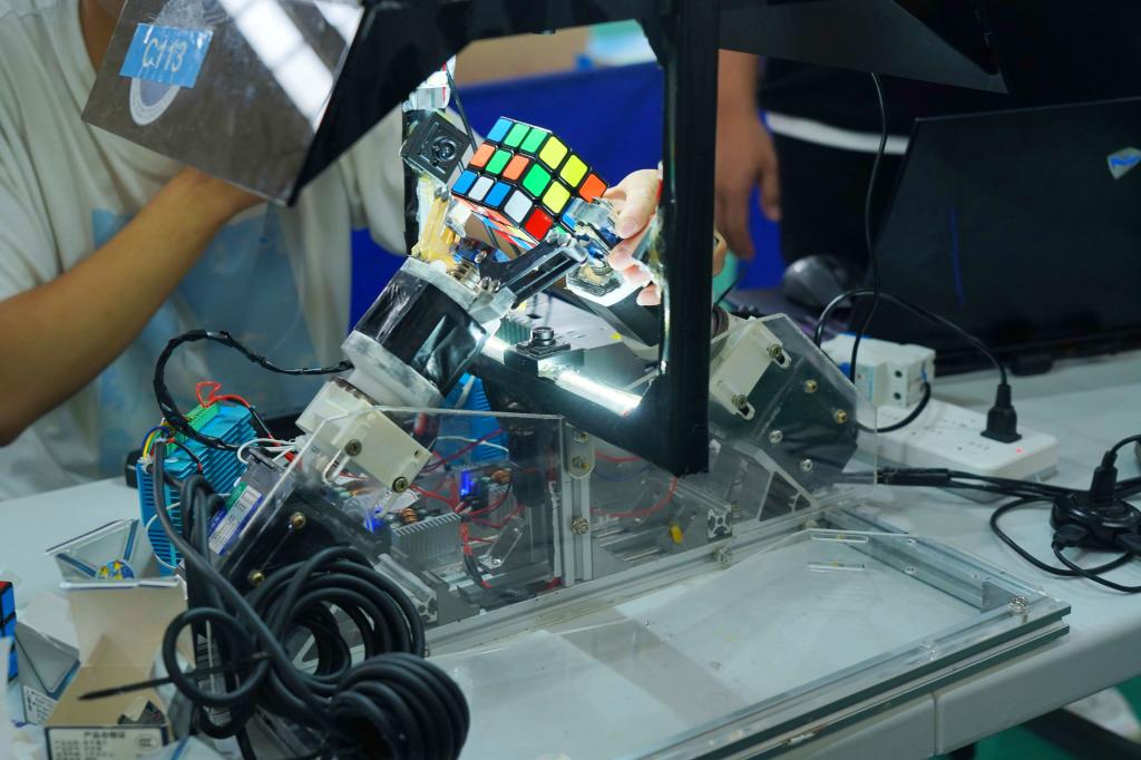 本次大學(xué)生智能機(jī)器人創(chuàng)意競賽分為“家用智能機(jī)器人”“魔方機(jī)器人”“智能機(jī)器人對抗賽”“國產(chǎn)工業(yè)機(jī)器人應(yīng)用挑戰(zhàn)賽”四個(gè)主題的比賽項(xiàng)目,其中“智能機(jī)器人對抗賽”又包括輪式格斗、仿人格斗、視覺對抗、無人機(jī)對抗、視覺對抗仿真等項(xiàng)目。