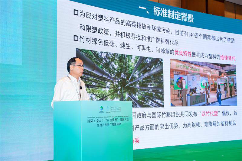 據悉,國際(安吉)“以竹代塑”創新大會暨竹產品推廣對接活動8月16日在浙江省安吉縣舉行。會議由國家發展和改革委、商務部、國家林業和草原局等十多個部門聯合國際竹藤組織主辦和承辦。作為林業碳匯與計量科技創新團隊負責人,周國模教授代表浙江農林大學和安吉縣竹產業發展中心在會上發布了這個標準。