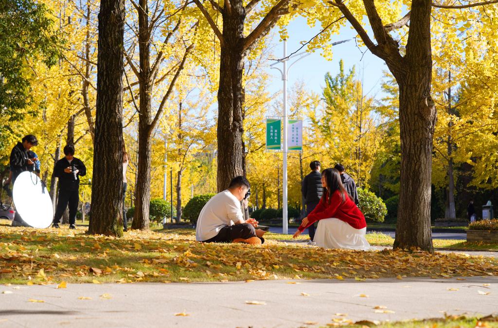 不少游客被這美麗的景色吸引,紛紛前來觀賞,在這滿地金黃之上漫步閑聊、拍照留念,感受初冬的氣息。“農(nóng)林大的銀杏是出了名的好看,今天的天氣很好,我們就過來玩一玩,拍拍照片,非常開心。”游客梁燕飛說,她和朋友幾乎每年都會(huì)來,所以一有時(shí)間,他們就迫不及待地來打卡了。