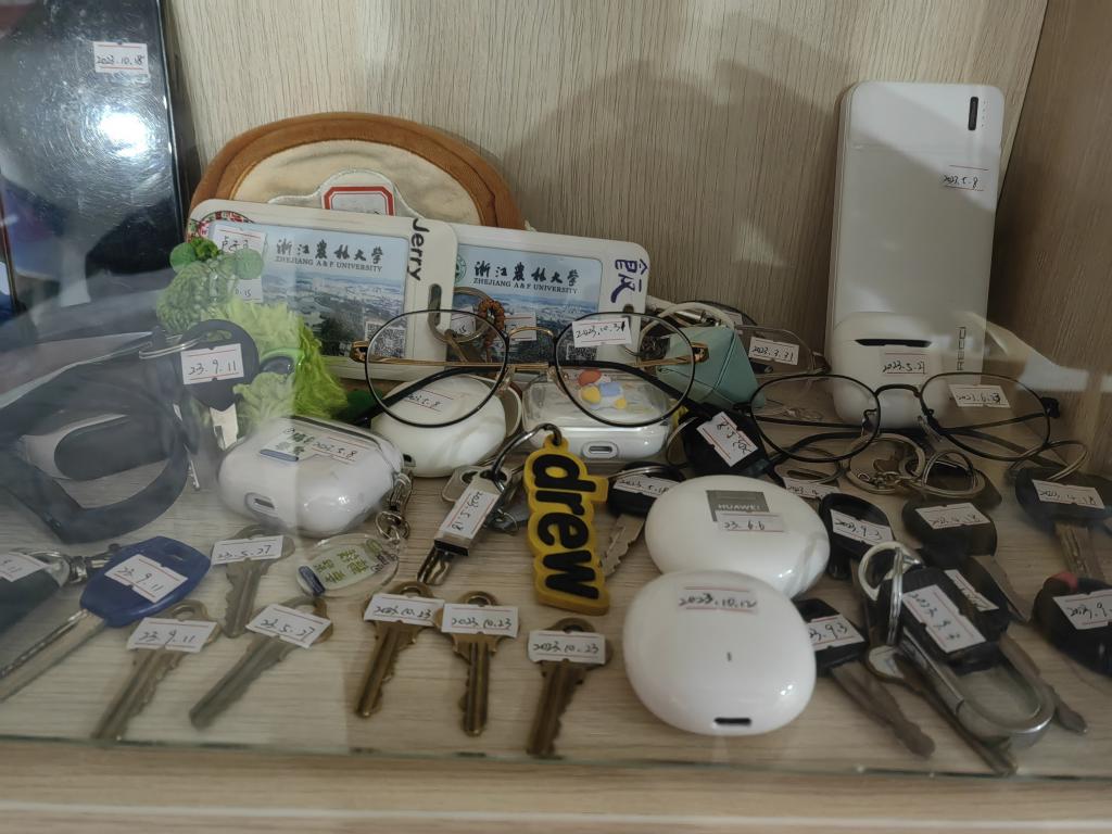 其實,大學校園里,學生在教室、食堂等地不小心遺失手機等各類貴重物品是十分常見的。但在浙江農林大學這些地方遺失物品往往很快就能找回。“因為后勤阿姨看到學生落下的東西,都會放在值班室或者交到學校服務大廳,學生只要及時去服務大廳,大概率都會找到。這些物品,大都是保潔阿姨撿到上交的。”浙江農林大學周琪同學說,有一次他把筆記本電腦放在教室里忘記了,就是在學校服務大廳找到的。