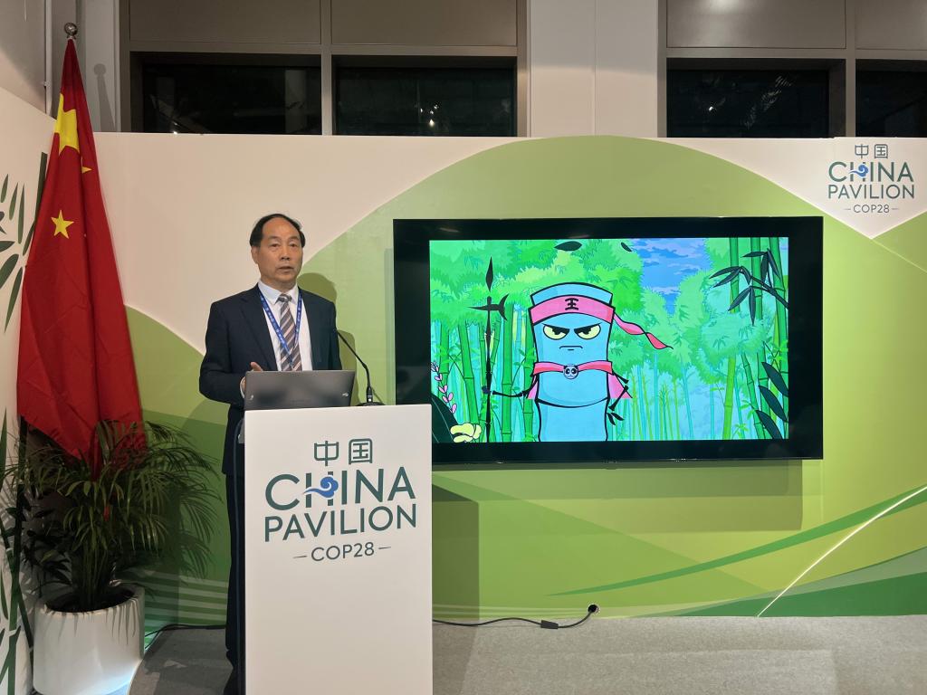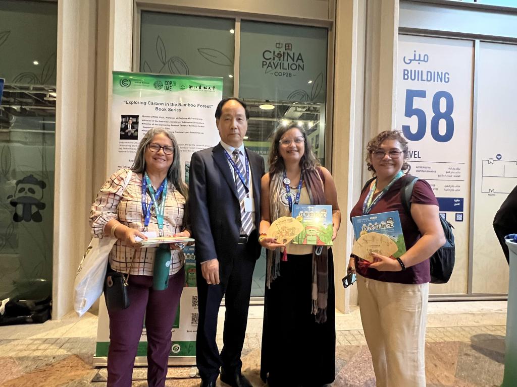 迪拜大會期間,中國綠色碳匯基金會、加拿大UBC大學和浙江農林大學聯合組織了“林業基于自然的氣候變化解決方案:知識與技能的全球對話”邊會。林業專家、企業家、政府官員等共同探討了林業緩解氣候變化的現狀和趨勢。周國模教授在分享了綠色創新案例,介紹了團隊在“以竹代塑”方面的研究成果和推廣成效。