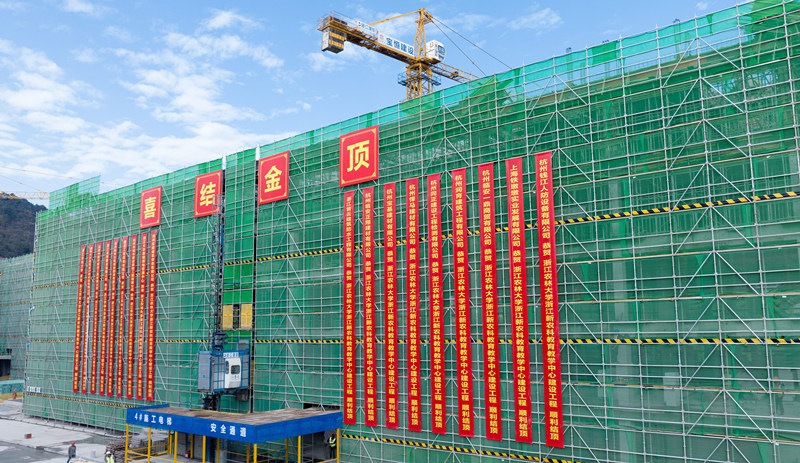 今年6月30日,浙江農(nóng)林大學(xué)師生翹首以盼的新農(nóng)科教育教學(xué)中心建設(shè)工程正式開工。該工程是省“重點建設(shè)工程”、“千項萬億工程”,新建總建筑面積 62645 平方米,其中地上建筑面積49995 平方米,地下建筑面積12650 平方米,總投資33165萬元。該項目從6月30日開工建設(shè),9月28日1#樓結(jié)頂至12月9日,6幢樓依次結(jié)頂,標(biāo)志著浙江新農(nóng)科教育教學(xué)中心建設(shè)工程將全面轉(zhuǎn)入二次結(jié)構(gòu)施工、安裝和裝飾裝修階段。該建設(shè)工程預(yù)計2024年8月底全面竣工。