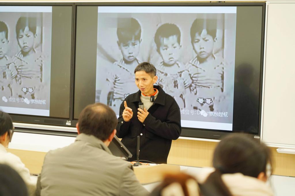 今年11月份,陳洪武成為浙江農林大學“頭雁”項目2023級的一名學員。在浙江農林大學學習期間,陳洪武的導師劉長國教授了解到他的事跡后,被他不服輸,有夢想、有目標,堅韌不拔的精神所感動,向陳洪武發出了給大學生作報告的邀請。于是,有了這個在大山深處養殖土雞的殘疾農民,給大學生作報告的一幕。