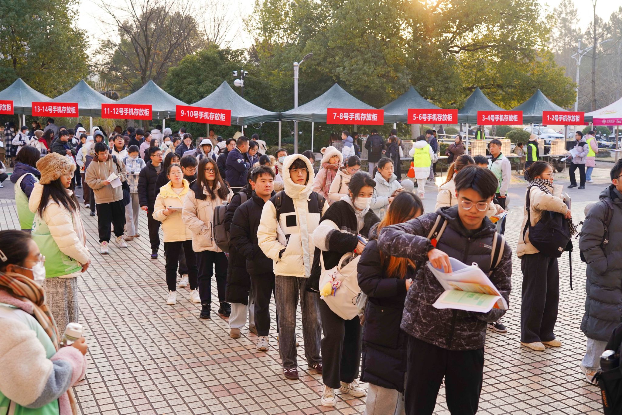 12月21日,2025年碩士研究生招生考試浙江農(nóng)林大學(xué)考點(diǎn),考生將手機(jī)寄存在考場(chǎng)外的手機(jī)存放柜后,排隊(duì)有序進(jìn)入考場(chǎng),認(rèn)真進(jìn)行答題。
