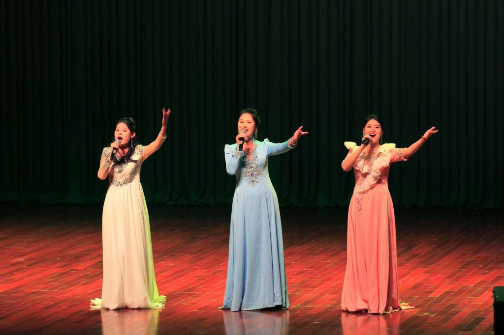 由張欣漪、王路敏、吳伊穎三位老師演唱的《在希望的田野上》拉開了整場演出的序幕,歌頌了改革開放以后的新變化、新面貌,展現了對幸福未來的憧憬。王琳帶來的女聲獨唱《踏歌起舞》,歌曲大氣磅礴,高音宛轉漂亮、蕩氣回腸,以深情為主調贊美祖國、歌唱家鄉,向觀眾充分地描繪出祖國幸福美好的新生活,讓觀眾內心澎湃。薩克斯與鋼琴合奏的《主題與幻想》作為歷史上第一首幻想曲,意大利歌劇的風格讓觀眾耳目一新。二重唱《燈火里的中國》把滿滿的祝福和無限的激情灑滿每一個角落,讓觀眾忍不住跟著輕哼。