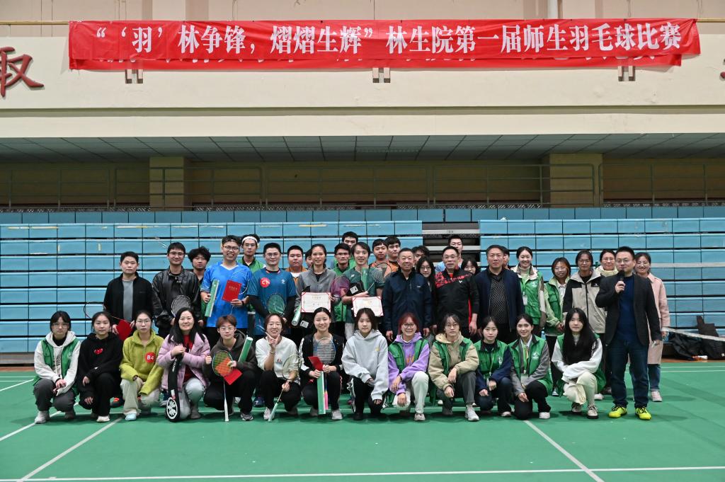 在現(xiàn)場師生的掌聲與喝彩聲中,學院第一屆師生羽毛球賽完美收官,本次比賽豐富了師生們的課余生活,增進了師生之間的交流合作,營造了良好的體育競技氛圍,進一步弘揚了林生“家”文化與“無體藝不農(nóng)林”的精神,得到了老師和同學們的一致好評。