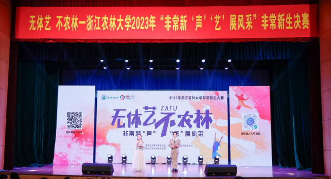11月18日,“非常新‘聲’‘藝’展風采”2023年浙江農林大學“非常新生”總決賽在東湖校區舉行。黨辦、校辦、宣傳部、新聞中心、學工部、研工部、研究生院、校團委相關負責人,各二級學院團委書記及十二所兄弟高校學生代表出席晚會。千余名師生集中觀看了總決賽,萬余人通過線上直播同步觀看賽事為選手加油助威。