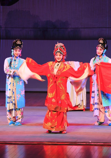 蘇許婷等三名老師帶來的婺劇亂彈《梳妝》,用豐富的表演技巧展現了大家閨秀周鳳蓮出嫁前的內心情感“月中仙女廣舒袖,撒向人間都是情”。由戴麗霜老師表演的婺劇徽戲《天女散花》,使觀眾們在優美的婺劇音樂和舞蹈表演中度過了一段美好的時光。婺劇灘簧《牡丹對課》,展現了天仙呂洞賓與藥鋪店主白牡丹一問一答的經典場面。