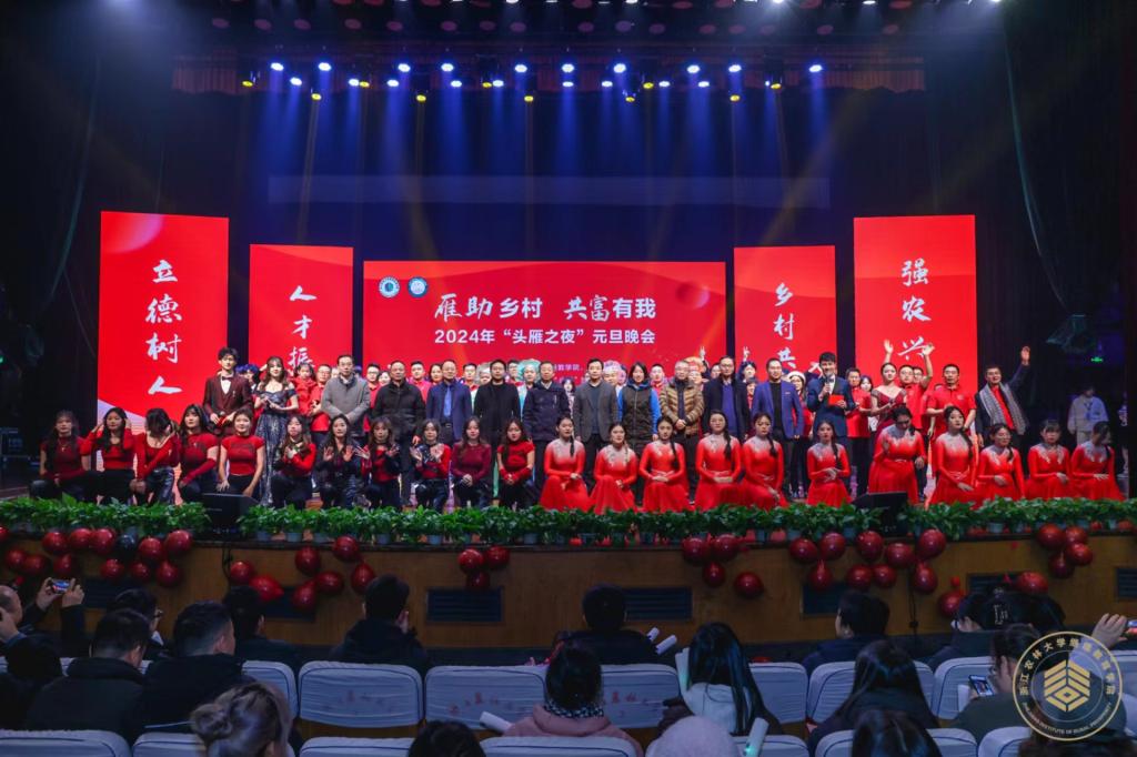 12月20日,繼教學院、共富學院2024年“頭雁之夜”元旦晚會在東湖校區活動中心影劇院舉行。副校長吳家勝,校黨委委員、宣傳部部長倪建均,學工部部長周曉光,教務處處長郭建忠,校團委書記魏玲玲,各兄弟學院學生工作負責人,學院班子成員、頭雁班學員及廣大師生代表歡聚一堂,共同觀看晚會。