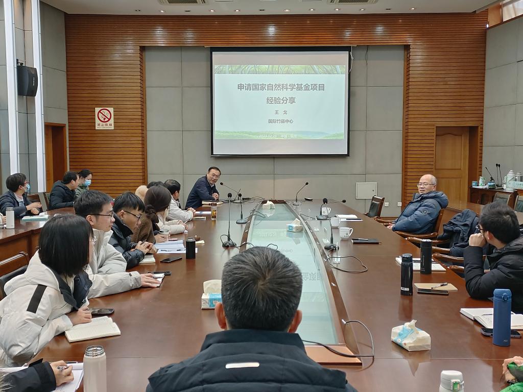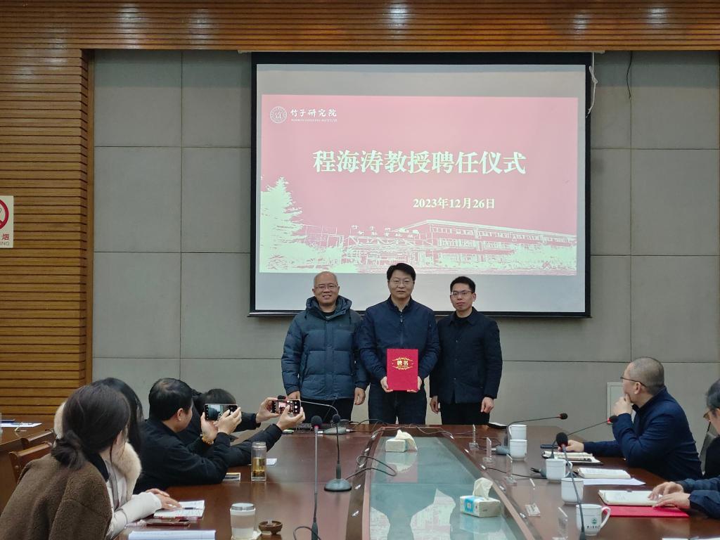 12月26日,竹子研究院舉行國際竹藤中心王戈研究員、程海濤研究員聘任儀式,王戈研究員作國家自然科學基金申報培訓。人才辦主任孫偉圣、竹研院黨政班子成員及全體教師出席聘任儀式及培訓會。