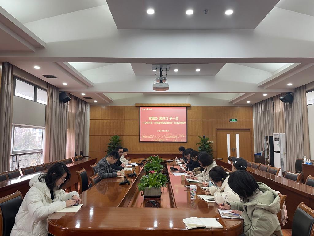2月26日,學(xué)校辦公室召開以“重服務(wù) 善擔(dān)當(dāng) 爭一流——奮力打造‘對得起學(xué)校發(fā)展歷史’的辦公室鐵軍”為主題的工作研討會,深入學(xué)習(xí)貫徹落實浙江省新春第一會和學(xué)校新春第一會會議精神。學(xué)校辦公室主任董杜斌主持會議。