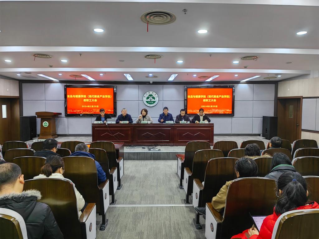2月29日下午,食健學院在圖書館小報告廳召開新學期全體教職工大會,學院院長閔偉紅、黨委書記汪和生、學院相關負責人及全體教職工參加會議,會議由閔偉紅主持。