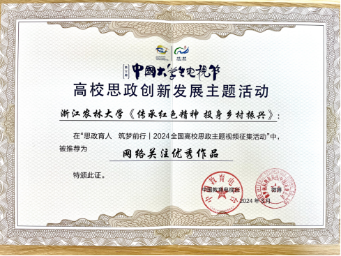 日前,中國大學生電影節“高校思政創新發展主題活動”在福州大學舉行。我校報送的短視頻作品《傳承紅色精神 投身鄉村振興》在“思政育人 筑夢前行 | 2024全國高校思政主題視頻征集活動”中被推薦為網絡關注優秀作品。