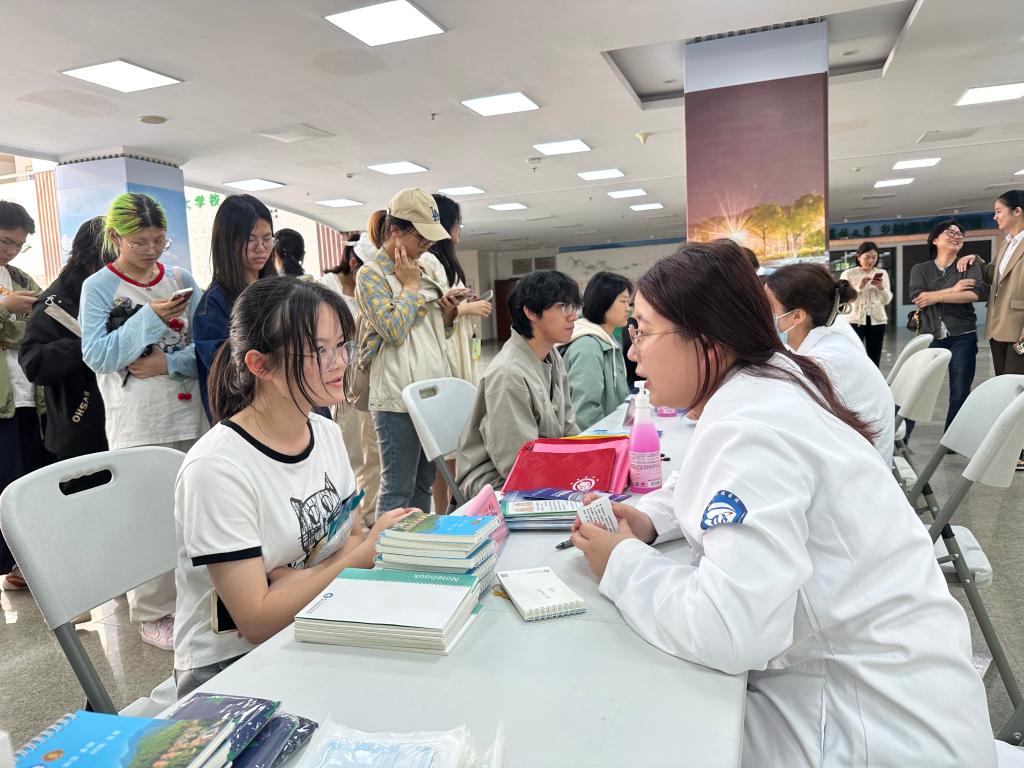 隨后,義診環節在熱烈的氣氛中拉開帷幕,前往咨詢的學生絡繹不絕,醫院專家們耐心解答同學們提出的各種皮膚問題,針對不同病情和皮膚狀況,提供詳細的診療意見和護膚建議,同學們在專家們的指導下,正確地認識自身的皮膚問題,收獲了處理皮膚問題的有效方法。