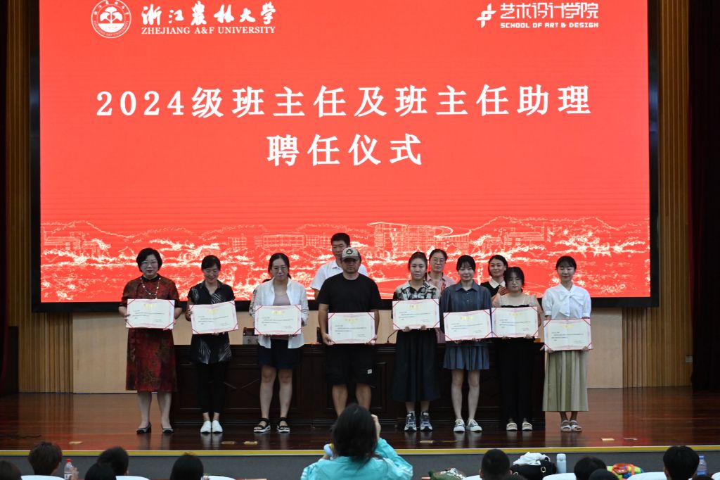 藝術(shù)學(xué)院黨委書記黃曉芳宣讀2024級(jí)班主任及班主任助理名單,學(xué)院領(lǐng)導(dǎo)為班主任代表頒發(fā)聘書。學(xué)院院長(zhǎng)陳思宇以“設(shè)計(jì)未來”為題,為2024級(jí)新生講授開學(xué)第一課。他從學(xué)院概況、人才培養(yǎng)、專業(yè)介紹、未來規(guī)劃四大方面分析當(dāng)前藝術(shù)與設(shè)計(jì)領(lǐng)域面對(duì)的機(jī)遇與挑戰(zhàn),鼓勵(lì)同學(xué)們要多學(xué)、多記,多看、多想,團(tuán)結(jié)、互助,朝著“把自己變成設(shè)計(jì)師、把自己變?yōu)槿瞬拧钡姆较蚨Α?/span>