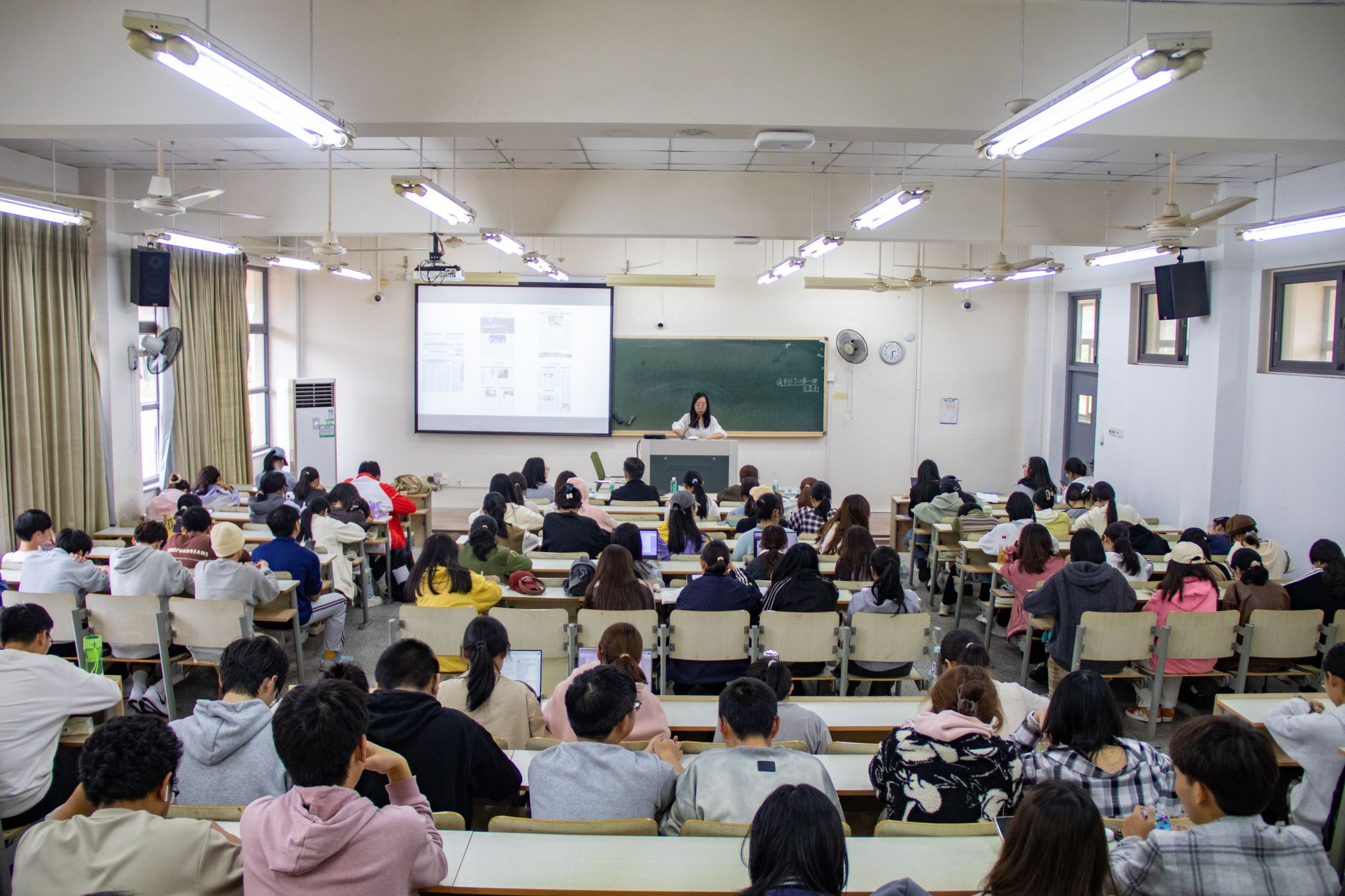 韋勤濤向各位新聞攝影工作和愛(ài)好者講解了校園攝影的基礎(chǔ)知識(shí),包括相機(jī)的構(gòu)成、不同類型的鏡頭及其特點(diǎn)等,還就相機(jī)的參數(shù)設(shè)置、取景技巧等內(nèi)容進(jìn)行了全面介紹。