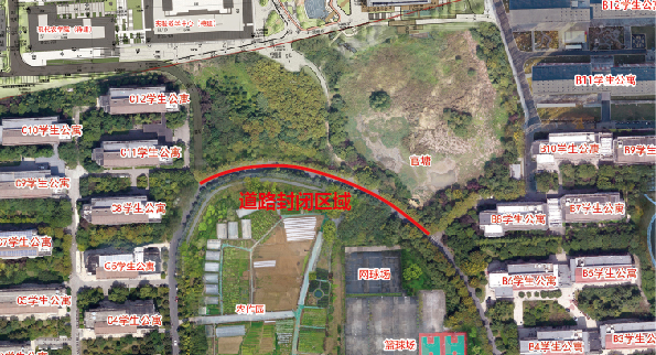 為確保D區學生宿舍建設工程施工期間的通行安全,對官塘南側(B區至C區)路段實行道路封閉,現將有關事項公告如下:
