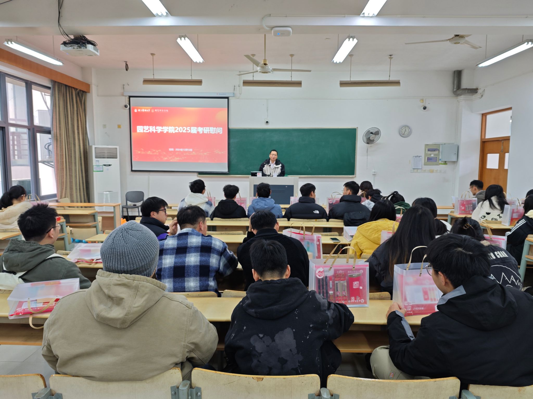 12月12日中午,園藝學院于教四101開展東湖心靈港灣——2025屆畢業生考研慰問活動。學院學生工作負責人、全體輔導員及2025屆考研學生參加。