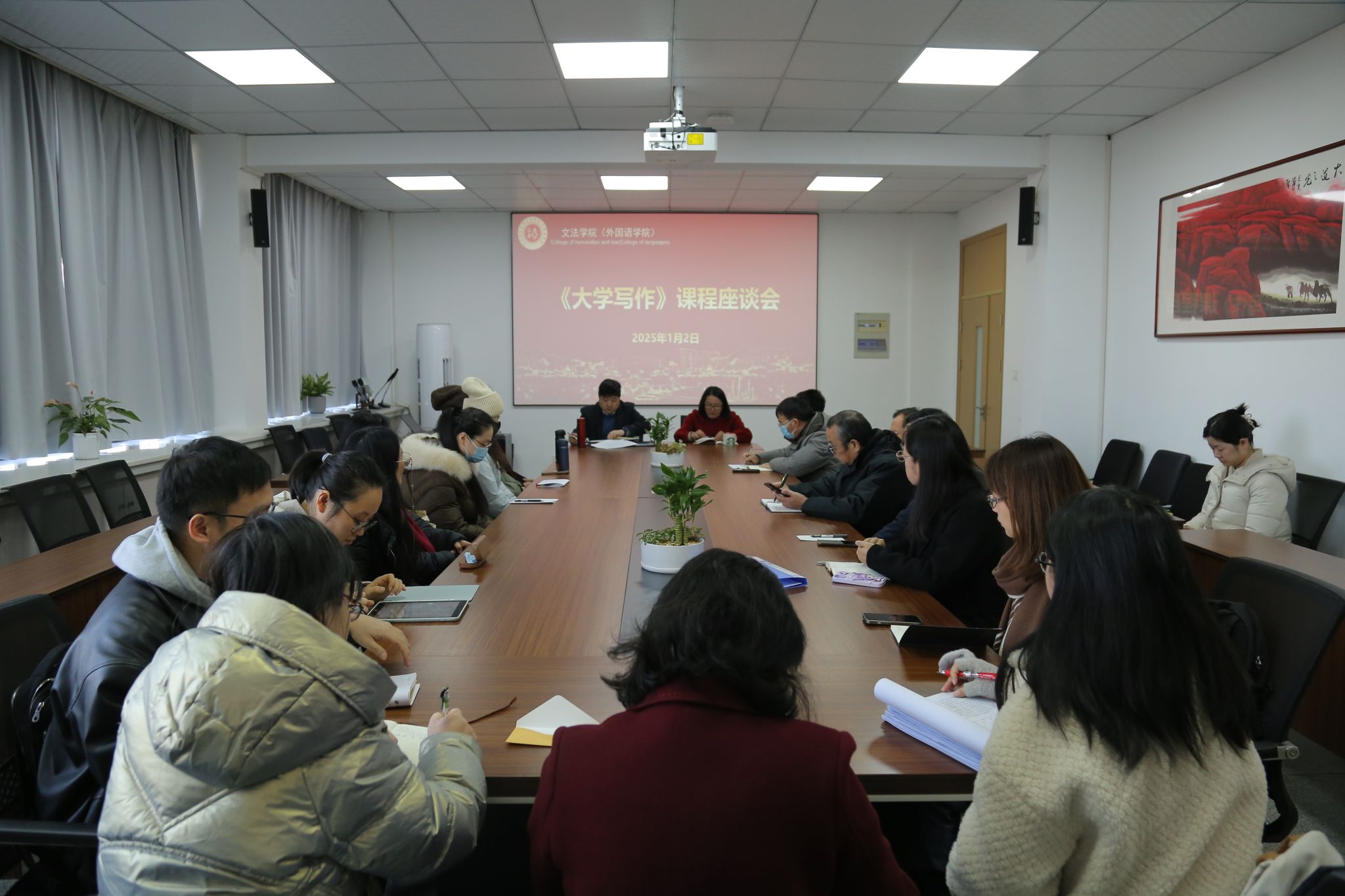 近日,大學寫作課程座談會在文法學院612召開。文法學院相關負責人、中文學科教師參加會議。