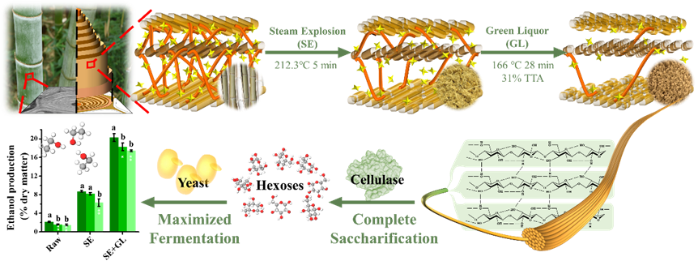 竹子作為一種多年生速生植物,廣泛分布于熱帶和亞熱帶地區,生物質產量大;毛竹作為生長最快的竹種之一,纖維素含量高,非常適合做生物乙醇的原料,可替代部分化石能源。原則上,木質纖維素轉化生物乙醇需要三個主要步驟:物理和化學預處理,纖維素酶解糖化,以及生物乙醇的微生物發酵;但木質纖維素的頑抗性增加了轉化成本,制約了木質纖維乙醇的發展。