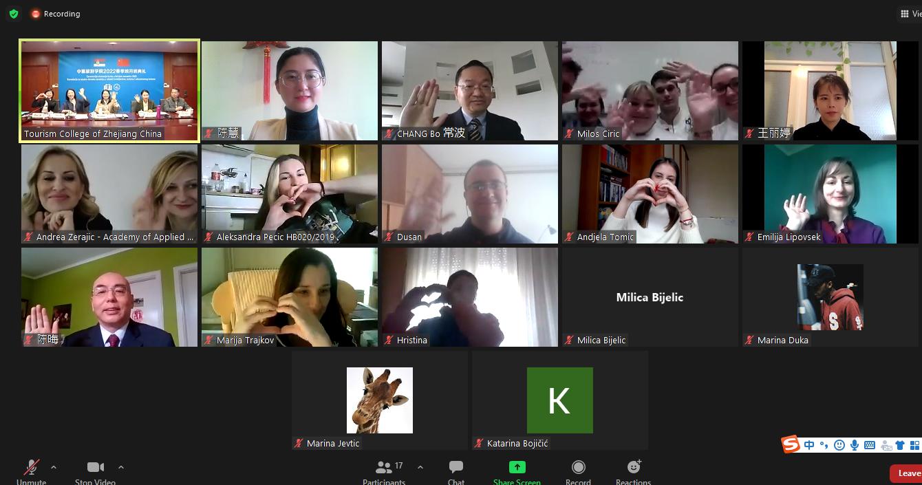 據悉,中塞旅游學院是浙江旅游職業學院和貝爾格萊德應用技術學院合作成立的中塞兩國在旅游教育領域的首個合作平臺。2022春季班將保持“中文+職業技能”教學特色,依托互聯網平臺開展教學,該班的中文課程將由諾維薩德大學孔子學院選派優秀漢語教師在當地通過直播授課,專業技能課程將由浙江旅游職業學院在杭州通過視頻形式完成。