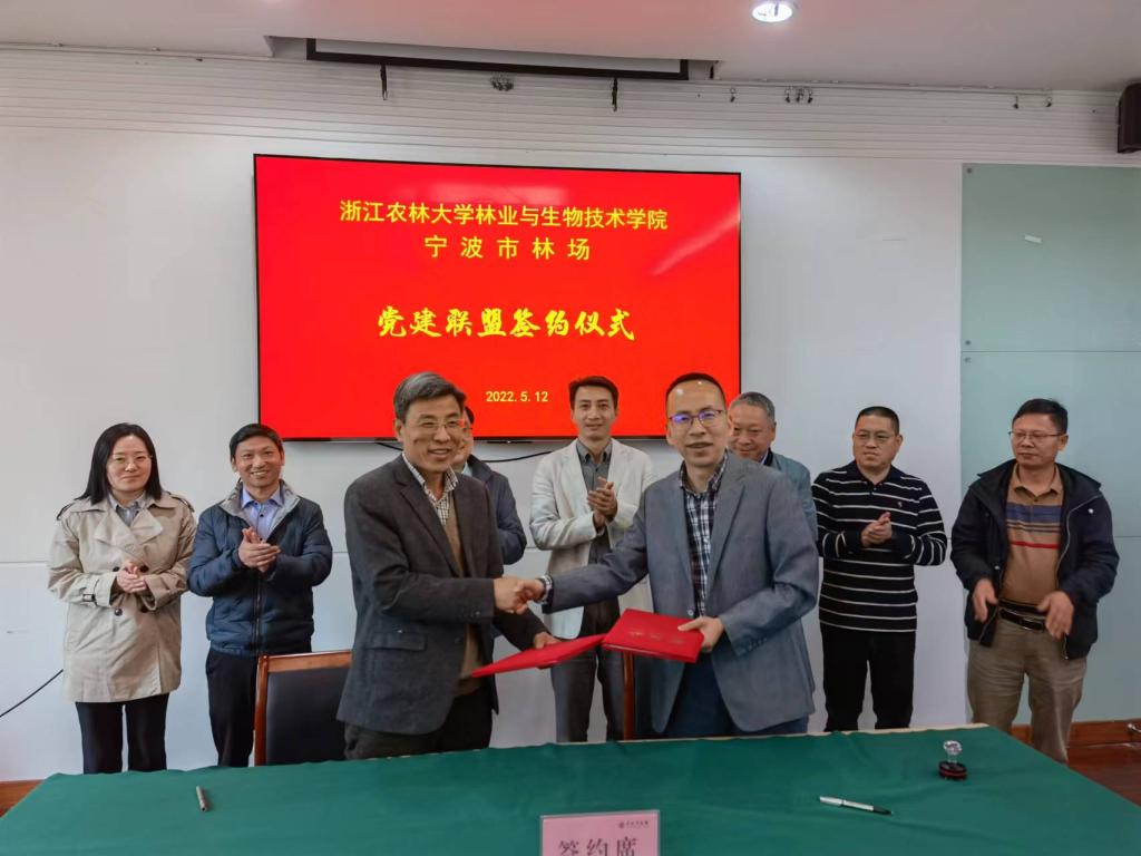 為深入推進黨史學習教育常態化長效化建設,加強校地合作,5月12日,林生院黨委與寧波市林場黨委簽訂黨建聯盟協議,并召開結對共建座談會。學院黨委書記鄭炳松一行8人參加座談會。