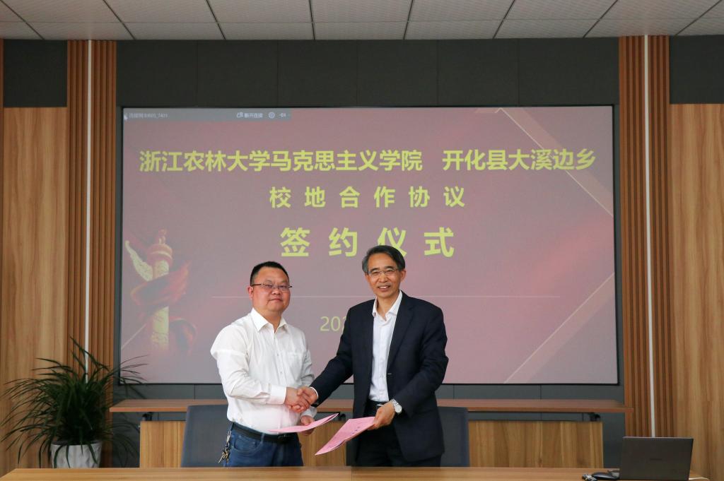 馬克思主義學(xué)院與開化縣大溪邊鄉(xiāng)政府在前期良好溝通協(xié)商的基礎(chǔ)上,雙方表示可以搭建合作共建平臺并簽署校地合作協(xié)議,圍繞黨建引領(lǐng)、鄉(xiāng)村建設(shè)、共同富裕等主題展開合作交流,實現(xiàn)資源共享、優(yōu)勢互補、互幫互建、產(chǎn)研相融,服務(wù)鄉(xiāng)村振興,助力共同富裕。