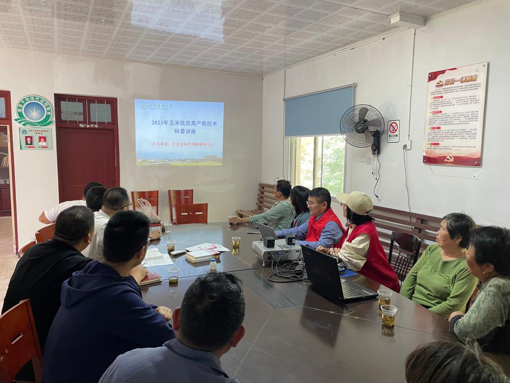 在開化縣楊林鎮(zhèn),農(nóng)學(xué)院為當(dāng)?shù)卮迕耖_展了“玉米優(yōu)質(zhì)高產(chǎn)栽培技術(shù)”的科普講座。以科技為支撐,加強優(yōu)質(zhì)綠色栽培技術(shù)在農(nóng)業(yè)生產(chǎn)一線上的宣傳推廣。此次科普講座,使當(dāng)?shù)剞r(nóng)民了解并掌握了玉米栽培管理的技術(shù)要點,增強了玉米種植的信心。